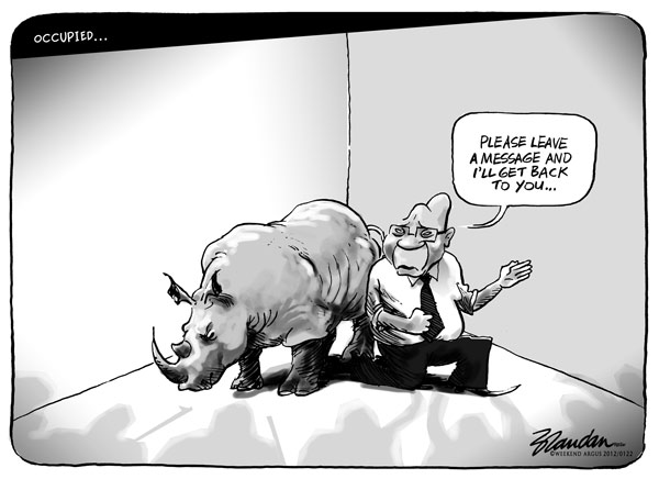 20120122wsunRhinoZuma Published January 23, 2012 at 600 × 436 in Weekend Argus, Sunday 22 January 2012