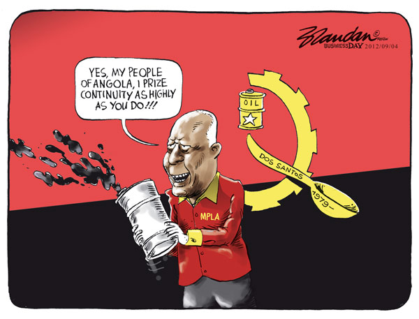 20120904cAngolaPrez Published September 5, 2012 at 600 × 457 in Business Day, Tuesday 4 September 2012