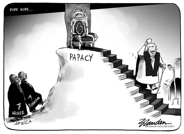 20130217wsunPopeHope Published February 18, 2013 at 600 × 436 in Weekend Argus, Sunday 17 February 2013