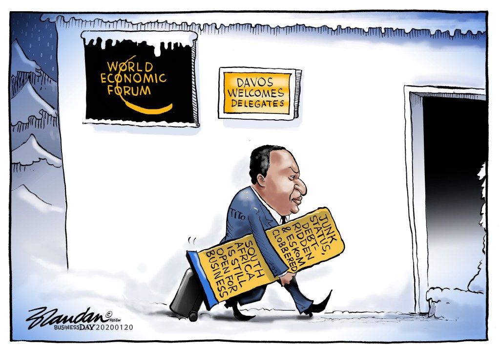 Business Day, Monday 20 January 2020 Posted on January 20, 2020 by Brandan Reynolds Finance Minister Tito Mboweni goes to Davos… Share this: Click to share on Facebook (Opens in new window) Facebook Click to share on X (Opens in new window) X Click to email a link to a friend (Opens in new window) Email Like Loading...