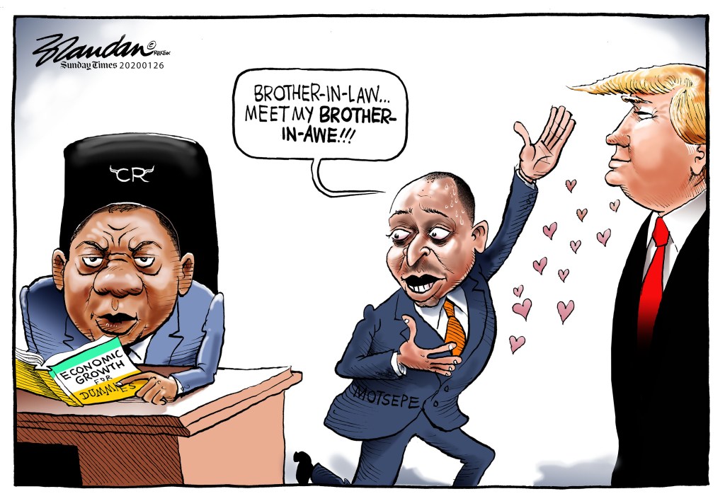 Sunday Times, 26 January 2020 Posted on January 26, 2020 by Brandan Reynolds “Africa loves you” says billionaire Patrice Motsepe to Donald Trump… Share this: Click to share on Facebook (Opens in new window) Facebook Click to share on X (Opens in new window) X Click to email a link to a friend (Opens in new window) Email Like Loading...