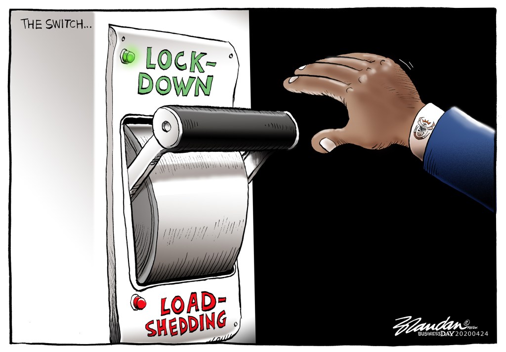 Business Day, Friday 24 April 2020 Posted on April 24, 2020 by Brandan Reynolds Reply President Cyril Ramaphosa announces that the national lockdown will be eased gradually from May 1… Share this: Click to share on Facebook (Opens in new window) Facebook Click to share on X (Opens in new window) X Click to email a link to a friend (Opens in new window) Email Like Loading...