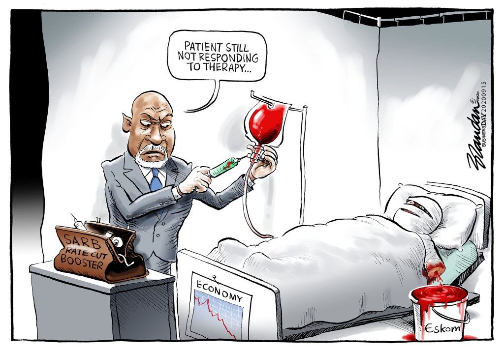 Business Day, Tuesday 15 September 2020 Posted on September 15, 2020 by Brandan Reynolds Reply SARB Governor Lesetja Kganyago’s series of interest rate cuts not having the desired effect… Share this: Click to share on Facebook (Opens in new window) Facebook Click to share on X (Opens in new window) X Click to email a link to a friend (Opens in new window) Email Like Loading...