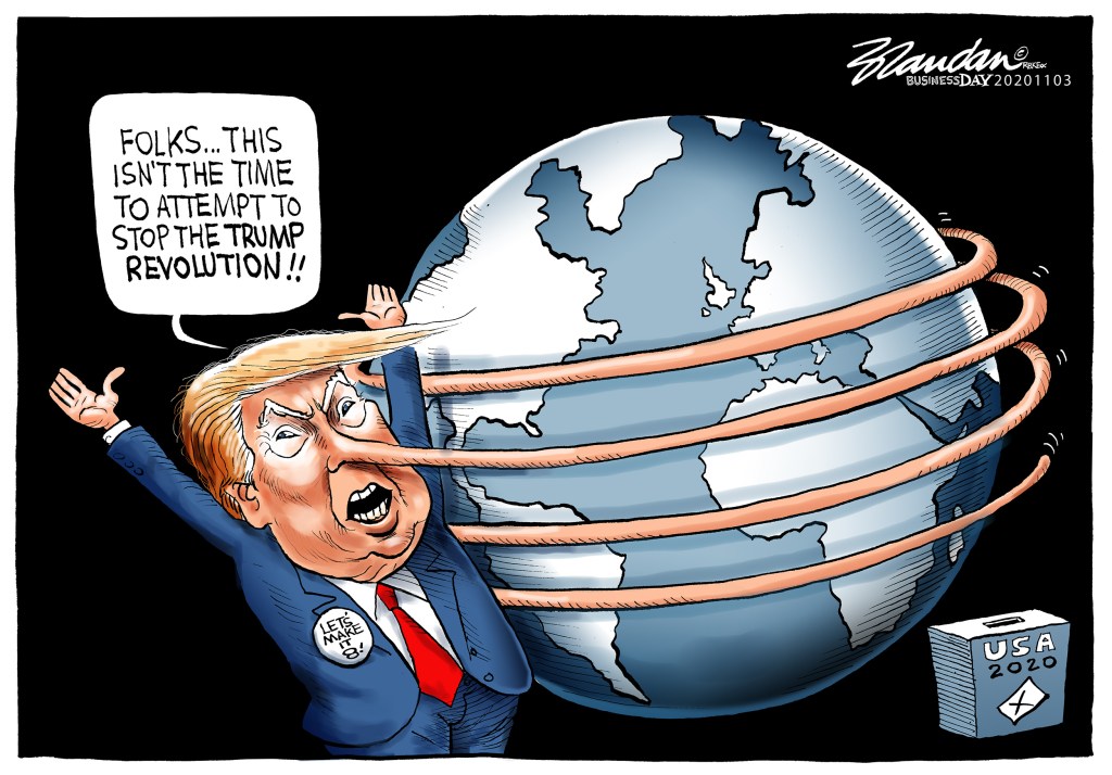 Business Day, Tuesday 3 November 2020 Posted on November 3, 2020 by Brandan Reynolds Reply Stop the Trump Revolution… Share this: Click to share on Facebook (Opens in new window) Facebook Click to share on X (Opens in new window) X Click to email a link to a friend (Opens in new window) Email Like Loading...