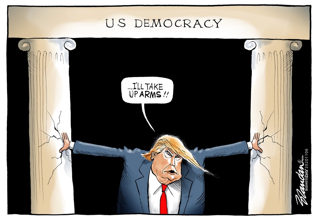 Business Day, Friday 6 November 2020 Posted on November 6, 2020 by Brandan Reynolds Reply Donald Trump continues undermining the election process as Biden edges closer to victory… Share this: Click to share on Facebook (Opens in new window) Facebook Click to share on X (Opens in new window) X Click to email a link to a friend (Opens in new window) Email Like Loading...
