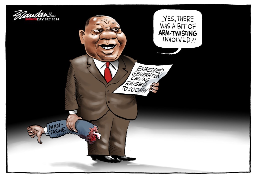 President Cyril Ramaphosa admits he twisted Minerals and Energy Minister Gwede Mantashe’s arm to get him to agree to raise the ceiling on embedded generation projects to 100MW…