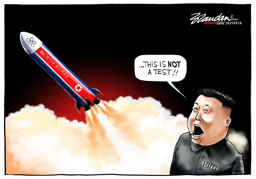 Business Day, Thursday 16 September 2021 Posted on September 16, 2021 by Brandan Reynolds Reply North Korea launches a ballistic test missile into the Sea of Japan… Share this: Click to share on Facebook (Opens in new window) Facebook Click to share on X (Opens in new window) X Click to email a link to a friend (Opens in new window) Email Like Loading...