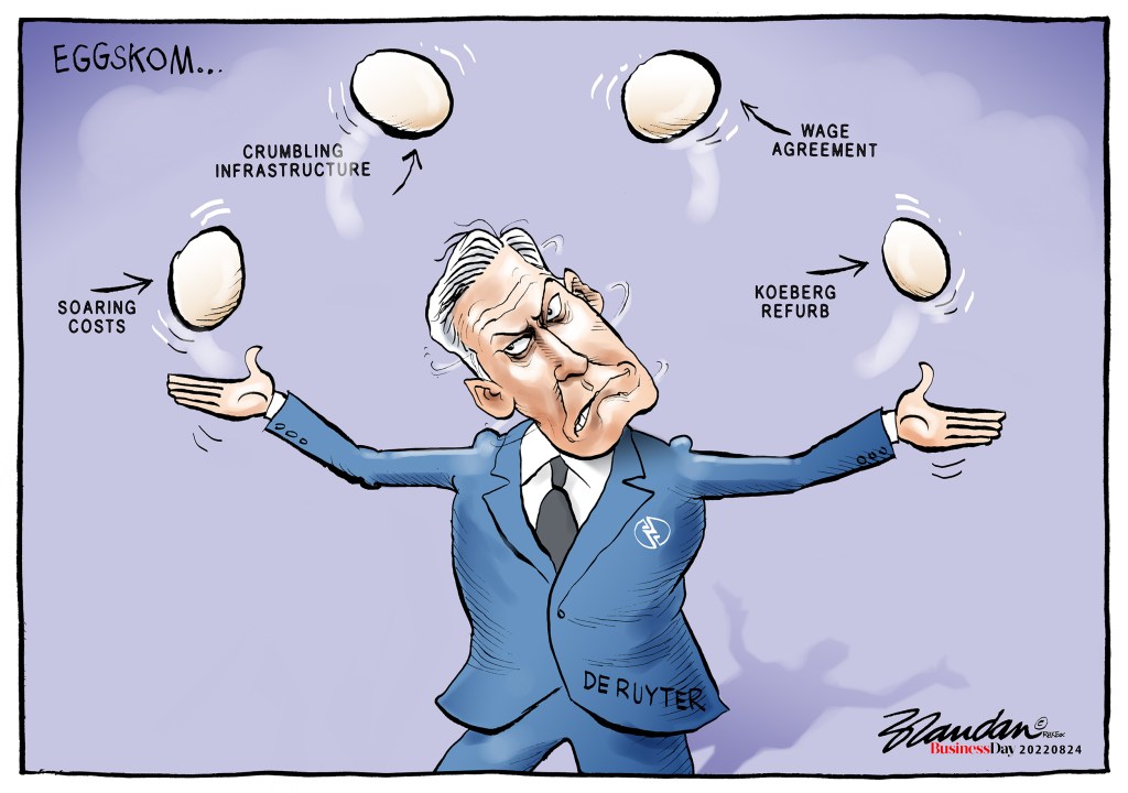 Business Day, Wednesday 24 August 2022 Posted on August 24, 2022 by Brandan Reynolds CEO Andre de Ruyter holding together fragile Eskom as perpetual power disaster looms… Share this: Click to share on Facebook (Opens in new window) Facebook Click to share on X (Opens in new window) X Click to email a link to a friend (Opens in new window) Email Like Loading...