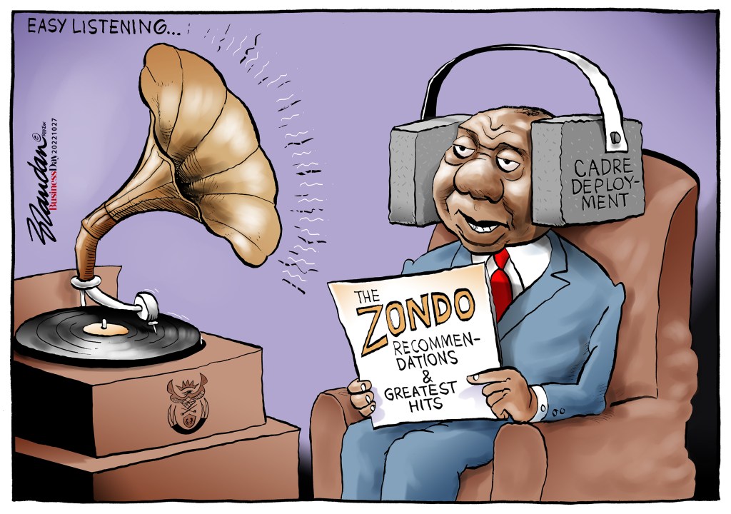 Business Day, Thursday 27 October 2022 Posted on October 27, 2022 by Brandan Reynolds President Ramaphosa is giving the recommendations from the Zondo Inquiry “serious consideration”… Share this: Click to share on Facebook (Opens in new window) Facebook Click to share on X (Opens in new window) X Click to email a link to a friend (Opens in new window) Email Like Loading...