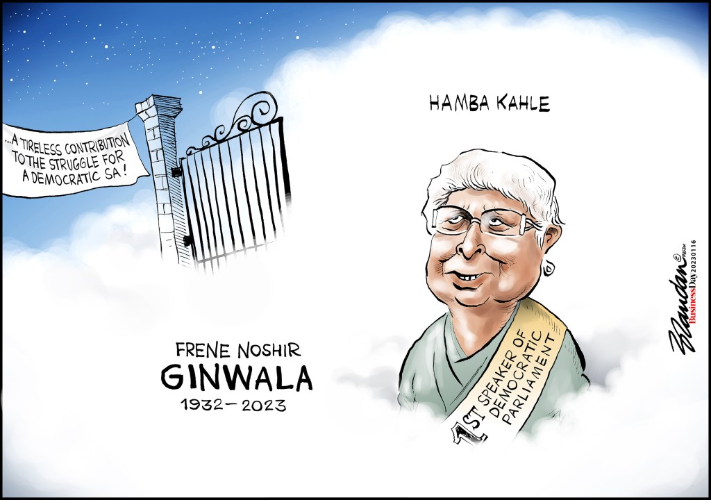 Business Day, Monday 16 January 2023 Posted on January 16, 2023 by Brandan Reynolds RIP Frene Ginwala… Share this: Click to share on Facebook (Opens in new window) Facebook Click to share on X (Opens in new window) X Click to email a link to a friend (Opens in new window) Email Like Loading...