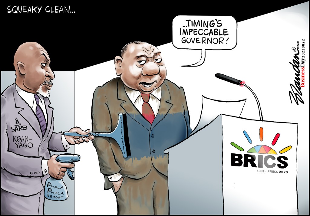 Business Day, Tuesday 22 August 2023 Posted on August 22, 2023 by Brandan Reynolds SA Reserve Bank clears Ramaphosa on dodgy Phala Phala buffalo transaction citing it was “not perfected”… Share this: Click to share on Facebook (Opens in new window) Facebook Click to share on X (Opens in new window) X Click to email a link to a friend (Opens in new window) Email Like Loading...