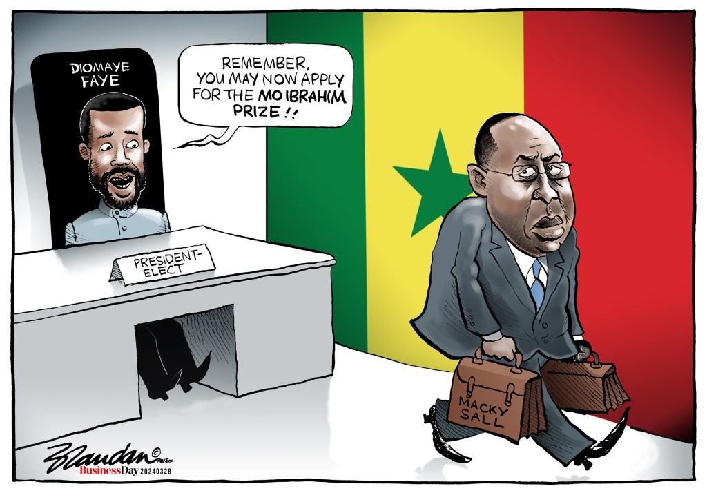 Business Day, Thursday 28 March 2024 Posted on March 28, 2024 by Brandan Reynolds Senegal elects Diomaye Faye as President after 12 years of Macky Sall… Share this: Click to share on Facebook (Opens in new window) Facebook Click to share on X (Opens in new window) X Click to email a link to a friend (Opens in new window) Email Like Loading...