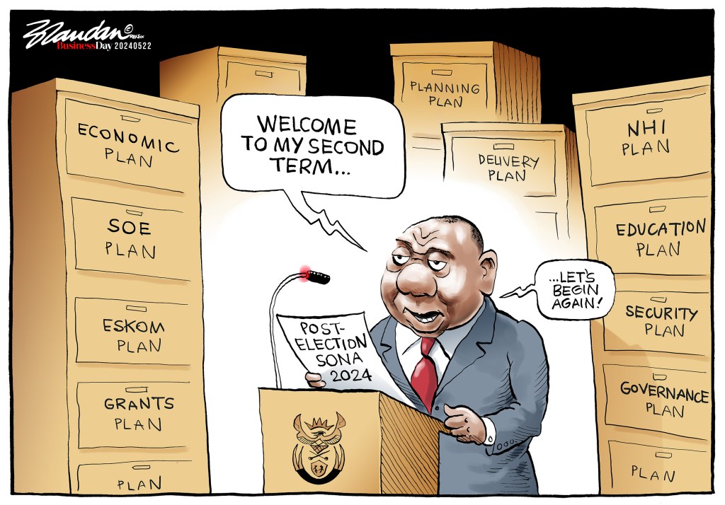 Business Day, Wednesday 22 May 2024 Posted on May 22, 2024 by Brandan Reynolds Are we looking forward to a second Ramaphosa term?… Share this: Click to share on Facebook (Opens in new window) Facebook Click to share on X (Opens in new window) X Click to email a link to a friend (Opens in new window) Email Like Loading...