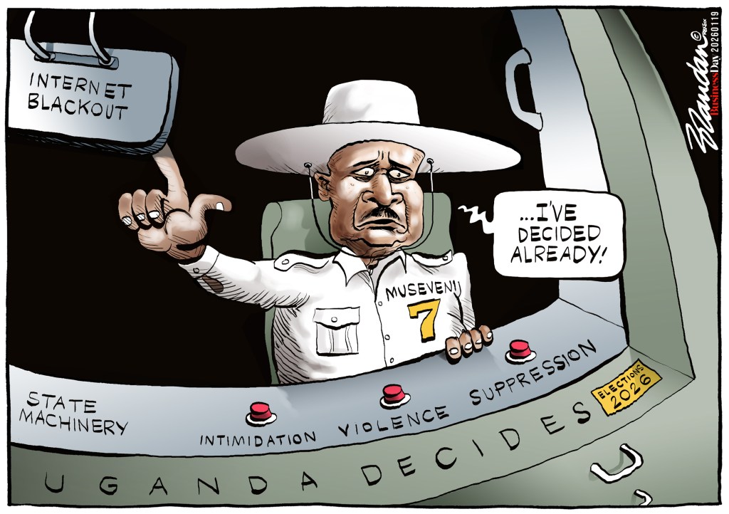 Business Day, Monday 19 January 2026 Posted on January 19, 2026 by Brandan Reynolds Yoweri Museveni wins a controversial 7th term as Uganda’s President in elections last week… Share this: Share on Facebook (Opens in new window) Facebook Share on X (Opens in new window) X Email a link to a friend (Opens in new window) Email Like Loading...