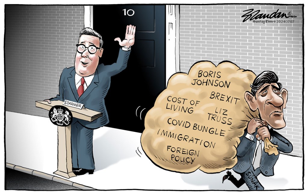 Labour wins elections by a landslide, bringing to an end 14 years of Tory turmoil…