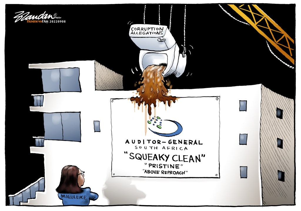 Business Day, Thursday 8 September 2022 Posted on September 8, 2022 by Brandan Reynolds Reply Massive stain approaching the Auditor-General’s office… Share this: Click to share on Facebook (Opens in new window) Facebook Click to share on X (Opens in new window) X Click to email a link to a friend (Opens in new window) Email Like Loading...