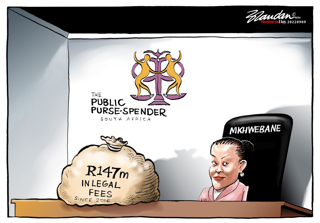 Business Day, Friday 9 September 2022 Posted on September 9, 2022 by Brandan Reynolds Reply Parliamentary inquiry reveals PP has spent R147m in legal fees since she took office in 2016… Share this: Click to share on Facebook (Opens in new window) Facebook Click to share on X (Opens in new window) X Click to email a link to a friend (Opens in new window) Email Like Loading...