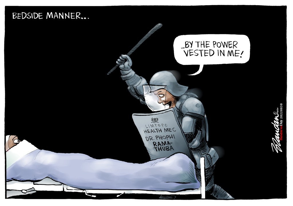 Business Day, Tuesday 30 August 2022 Posted on August 30, 2022 by Brandan Reynolds Reply Limpopo Health MEC berates Zimbabwean patient in hospital bed… Share this: Click to share on Facebook (Opens in new window) Facebook Click to share on X (Opens in new window) X Click to email a link to a friend (Opens in new window) Email Like Loading...