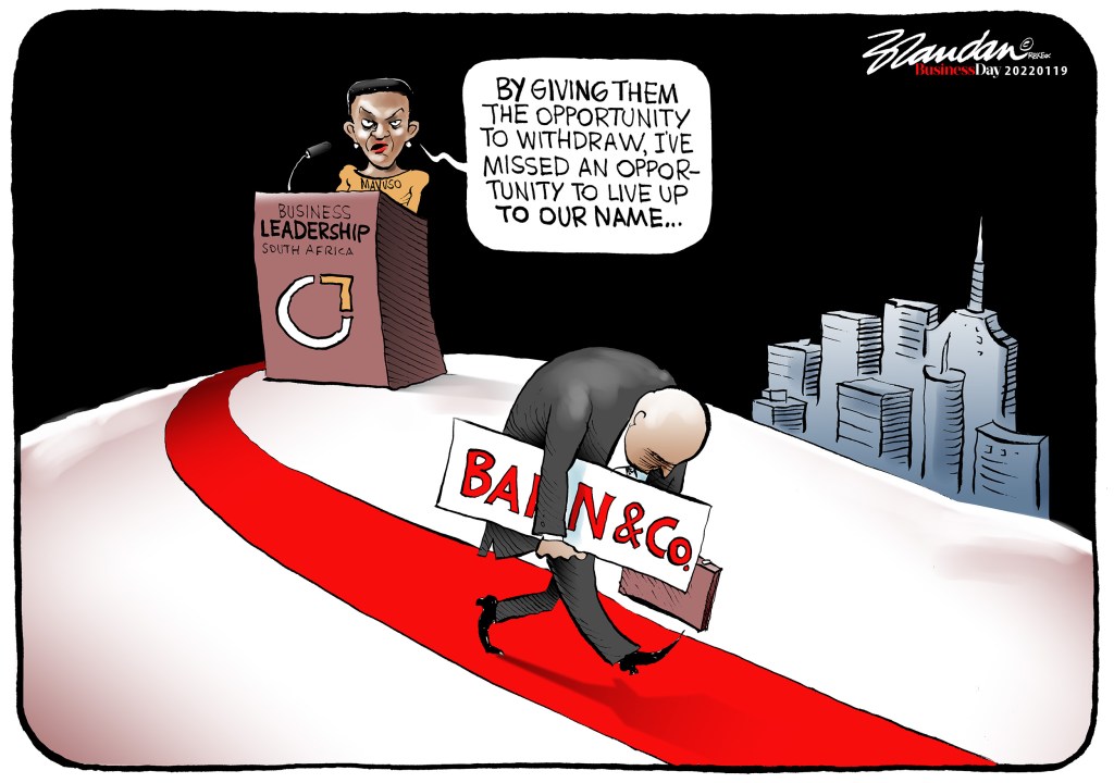 Business Day, Wednesday 19 January 2022 Posted on January 19, 2022 by Brandan Reynolds Reply Controversial State Capture consultancy firm Bain & Company voluntarily withdraws from its membership of BLSA… Share this: Click to share on Facebook (Opens in new window) Facebook Click to share on X (Opens in new window) X Click to email a link to a friend (Opens in new window) Email Like Loading...