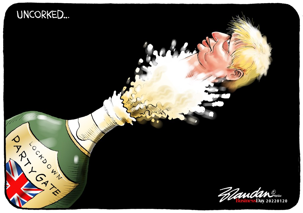 Business Day, Thursday 20 January 2022 Posted on January 20, 2022 by Brandan Reynolds Reply British PM Boris Johnson under fire for hosting parties during lockdown… Share this: Click to share on Facebook (Opens in new window) Facebook Click to share on X (Opens in new window) X Click to email a link to a friend (Opens in new window) Email Like Loading...