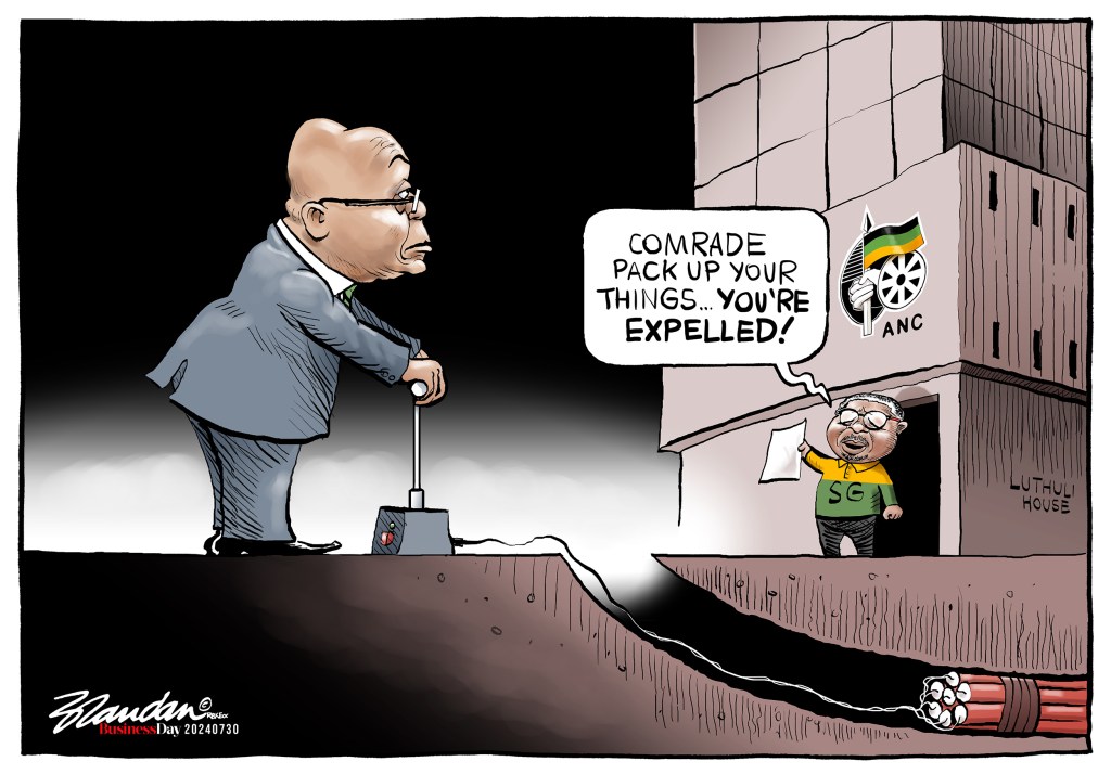 Business Day, Tuesday 30 July 2024 Posted on July 30, 2024 by Brandan Reynolds Reply Former President Jacob Zuma has been expelled by the ANC… Order a print of this cartoon Share this: Click to share on Facebook (Opens in new window) Facebook Click to share on X (Opens in new window) X Click to email a link to a friend (Opens in new window) Email Like Loading...